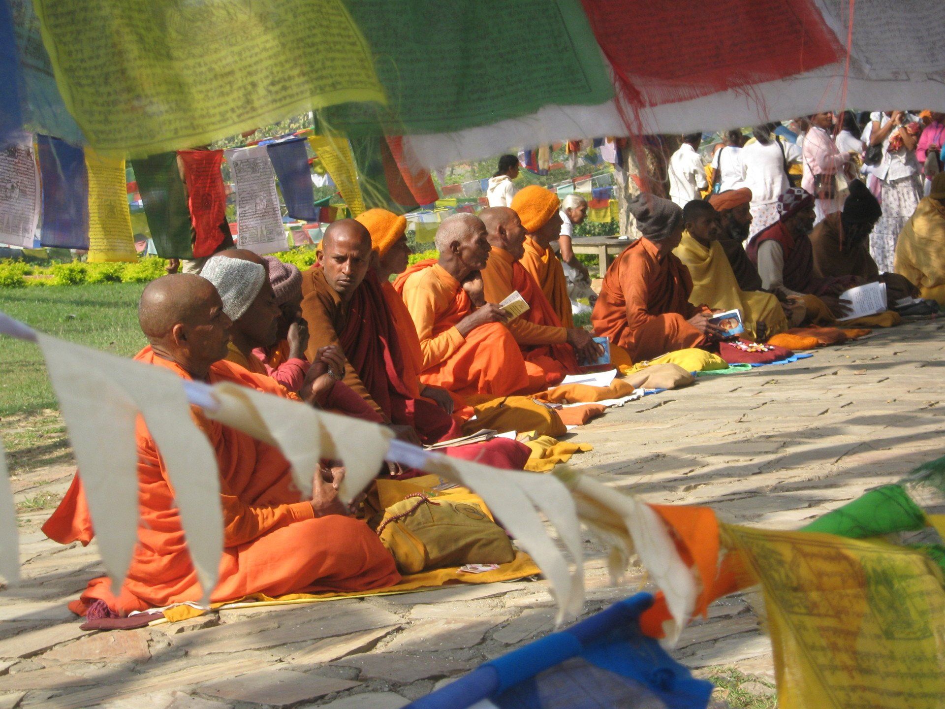Er is eigenlijk een park in een park. Het middelste park is de plaats waar de tempel staat over de ruïnes van Siddhartha's geboorteplek heen gebouwd. Hier komen wederom drommen monniken en nonnen bijeen. Het grotere park beslaat alle kloosters en tempels en is een heerlijke bosrijke omgeving. Ze allemaal bezoeken is teveel werk, maar enkele bezichtigen en in een kleine verlaten tempel een eigen meditatie doen is wel heel fijn.