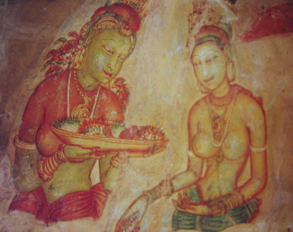 De muurschilderingen zijn, opmerkelijk genoeg, sensuele beeltenissen van vrouwelijk schoon. Dit was een gewaagde keuze van de toenmalige koning Kasyapa, aangezien het Boeddhisme het stoppen van lust verkondigd. Van de 500 originele schilderingen zijn er nog 21 overgebleven. De rest is vernietigd door boeddhistische monniken die naderhand op de Leeuwenrots verbleven.